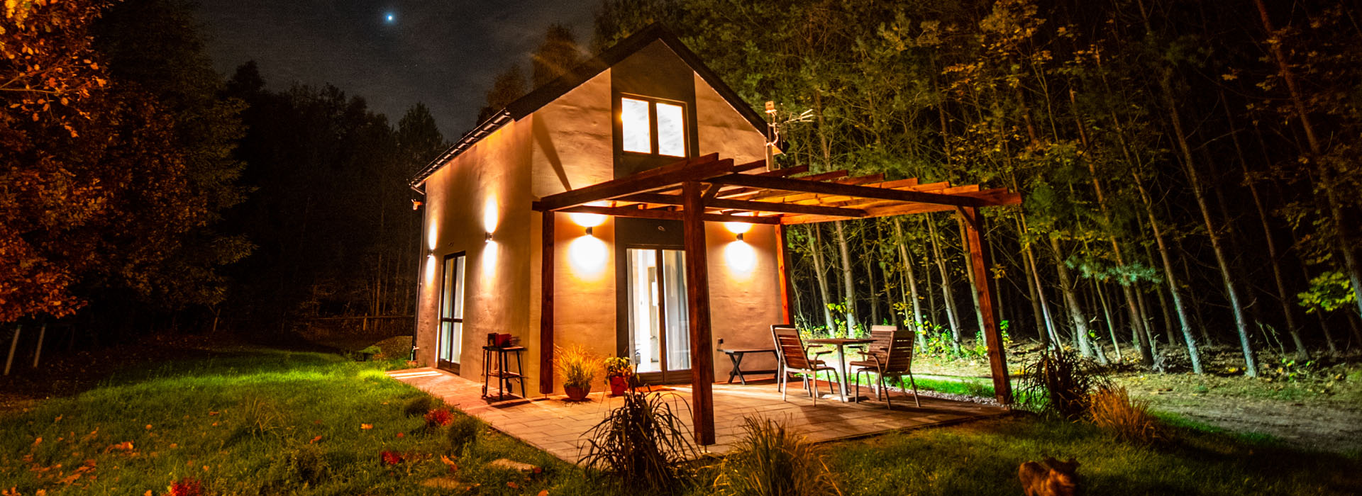 Domek na polanie to mały, drewniany domek. Składa się z salonu, jadalni z rozkładanym stołem, w pełni wyposażoną kuchnią (czajnik, lodówka, zmywarka, ekspres do kawy (Dolce Gusto), naczynia, sztućce, garnki, płyta grzewcza do gotowania) oraz łazienki. To wszystko na parterze.